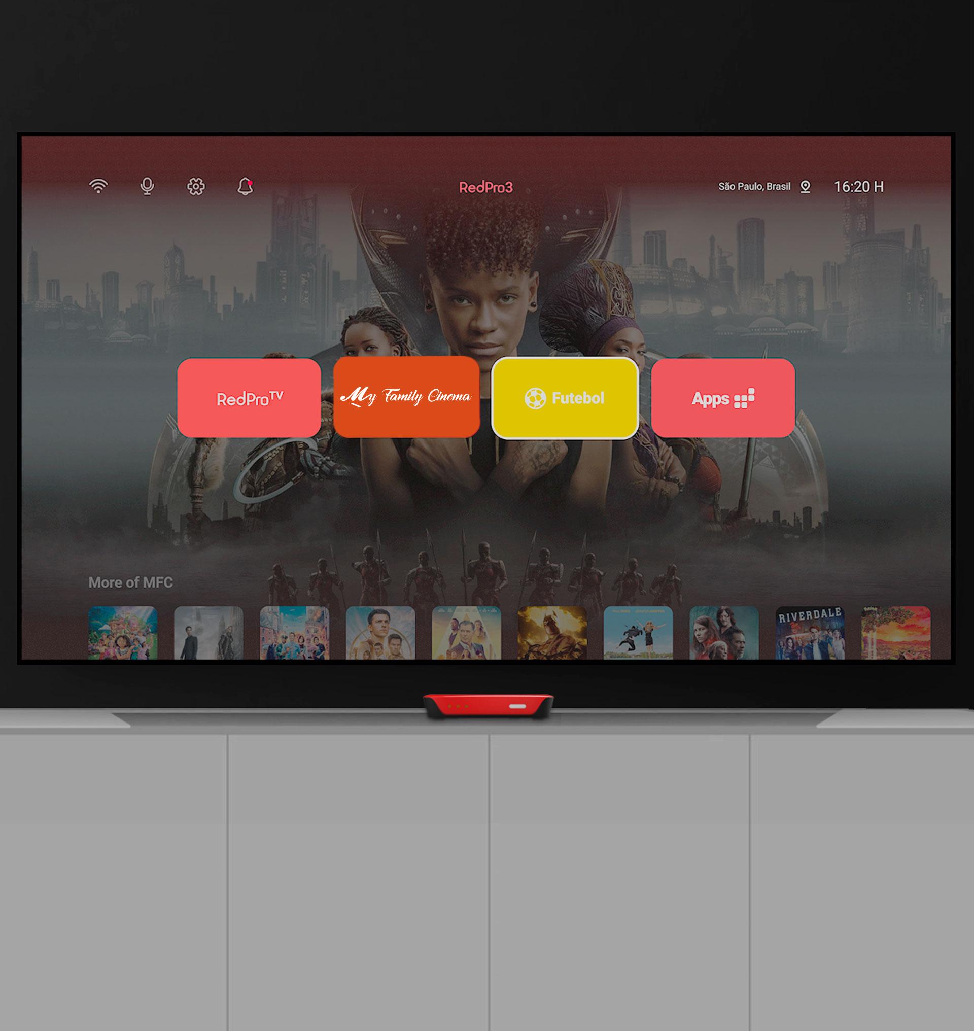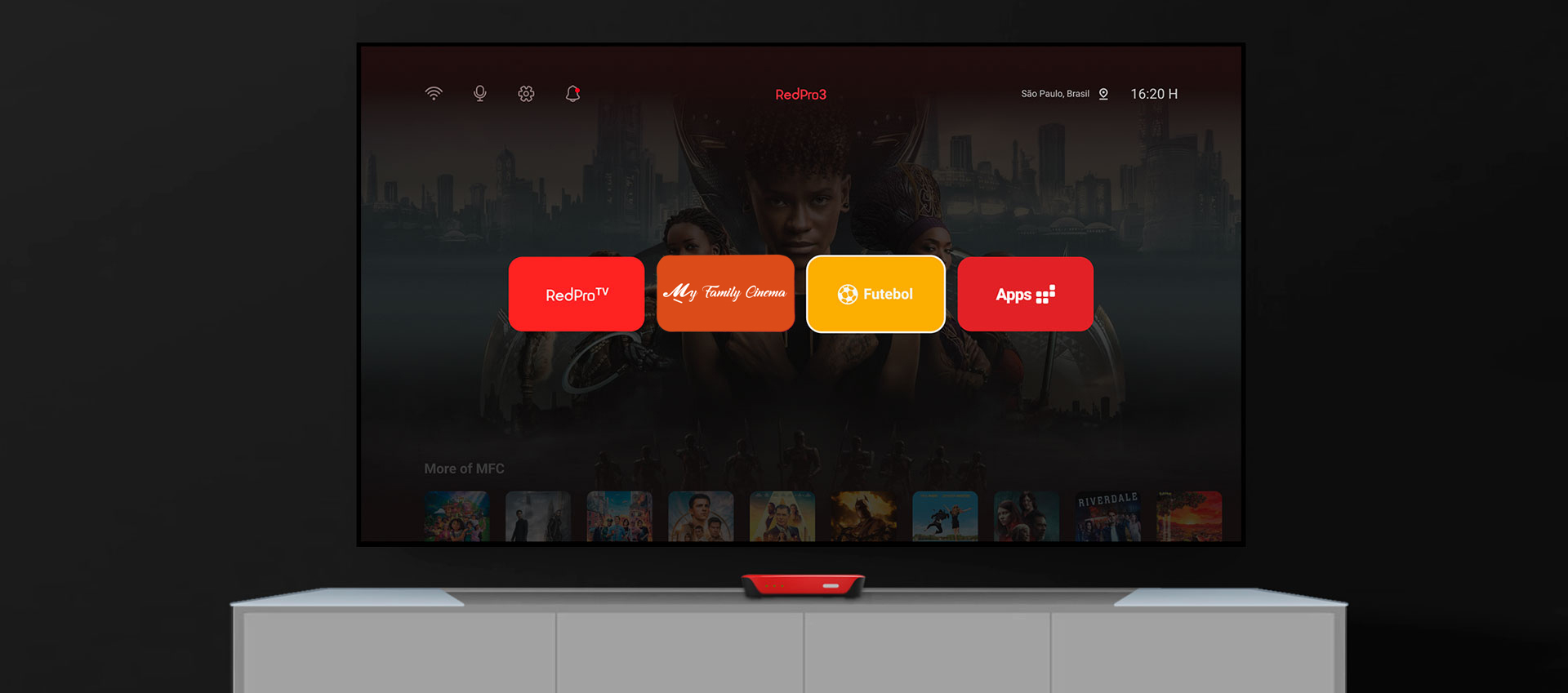 A potência aprimorada transforma a maneira como você assiste à TV. RedPro3 chega com um hardware + avançado e interface renovada, com um novo launcher e atalho para Menu de Futebol.